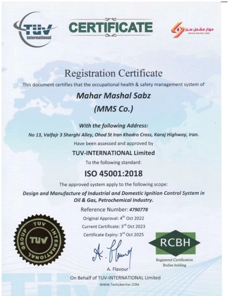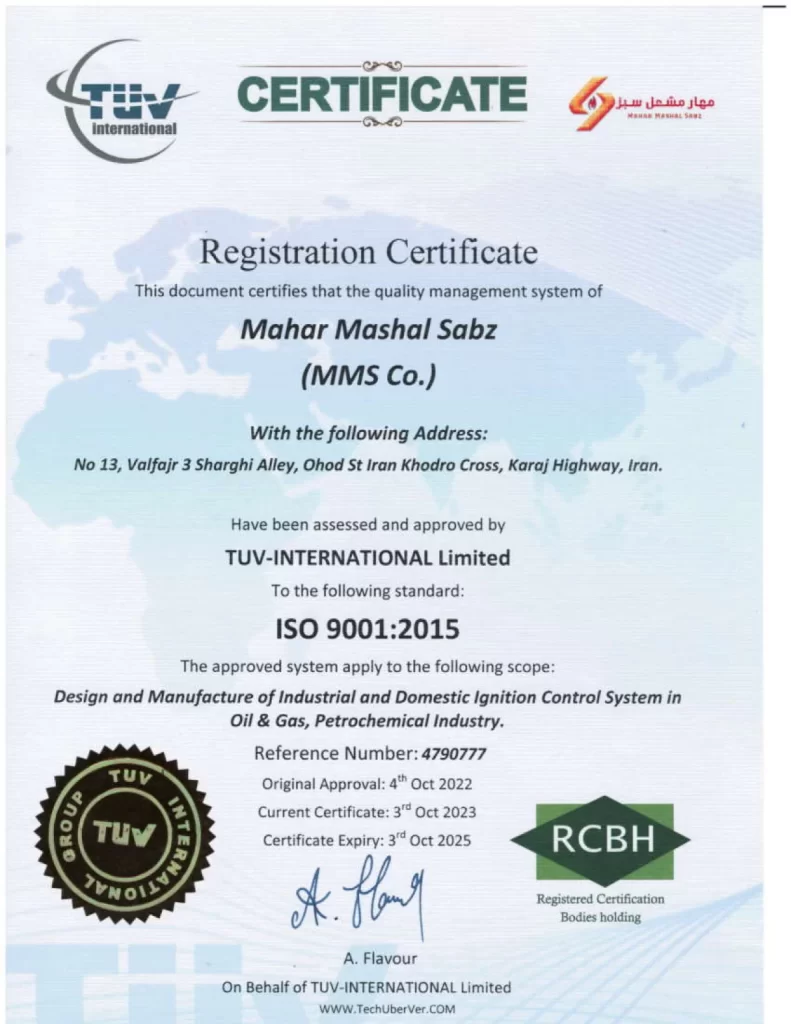 شركة “مهار مشعل سبز” الهندسية من أفضل الشركات الهندسية في مجال أنواع مفتاح الضغط القياسي الهواء- الغاز الموافقة للمعايير، في إيران.